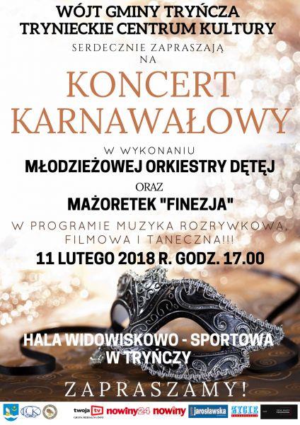 Zapraszamy na Koncert Karnawałowy w wykonaniu Młodzieżowej Orkiestry Dętej z Tryńczy i Mażoretek Finezja