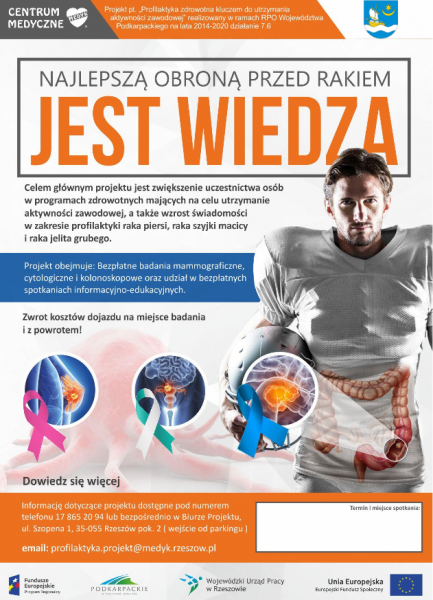 Urząd Gminy Tryńcza zaprasza wszystkich mieszkańców do udziału w Projekcie dofinansowanym z Funduszy Europejskich pt. "Profilaktyka zdrowotna kluczem do utrzymania aktywności zawodowej"