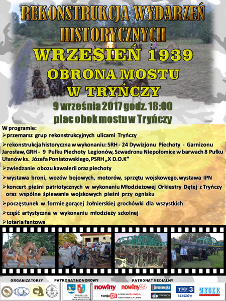 9 września 2017 r. o godzinie 18:00 na placu obok mostu w Tryńczy odbędzie się Rekonstrukcja Wydarzeń Historycznych – Wrzesień 1939 r. - obrona Mostu w Tryńczy.