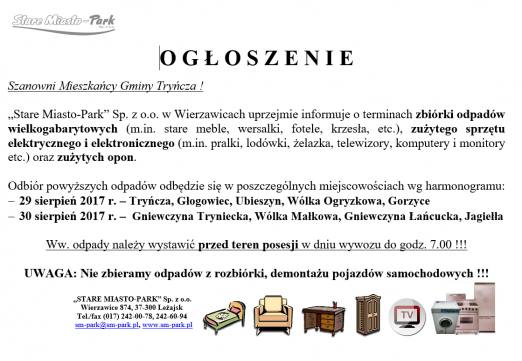 Końecm sierpnia w naszej gminie odbędzie się zbiórka odpadów wielkogabarytowych