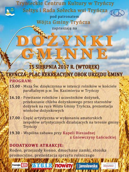 Zapraszamy na dożynki gminne, które odbędą się 15 sierpnia na placu rekreacyjnym obok Urzędu Gminy w Tryńczy