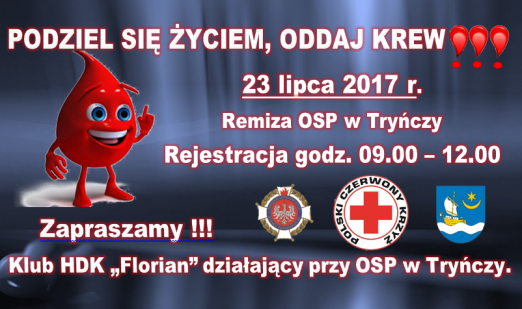 Zapraszamy wszystkich chętnych do wzięcia udziału w akcji Poboru Krwi, która zostanie przeprowadzona 23 lipca 2017 r.