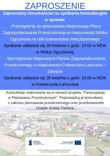 więcejProjekt realizowany w Gminie Tryńcza Realizacja mający na celu włączenie mieszkańców w procesy planowania poprzez organizację spójnego i kompleksowego systemu konsultacji w obszarze planowania przestrzennego.