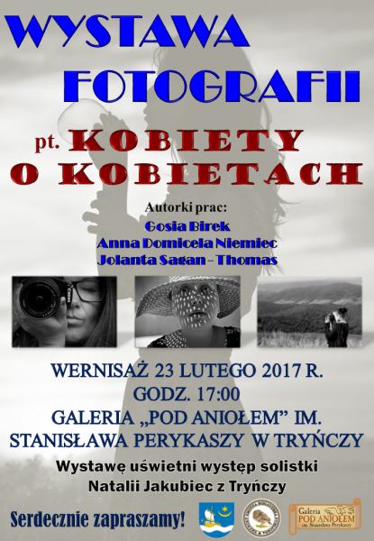 Serdecznie zapraszamy na wernisaż wystawy fotografii pt. "Kobiety o kobietach", która odbędzie się 23 lutego br. (czwartek) o godz. 17:00 w Galerii "Pod Aniołem" w Tryńczy.