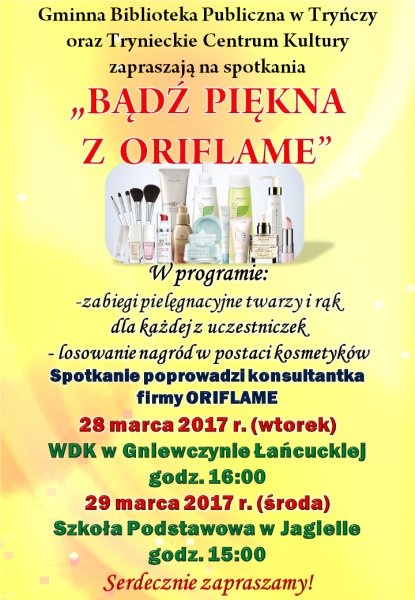 Serdecznie zapraszamy na spotkania z konsultantką firmy Oriflame!