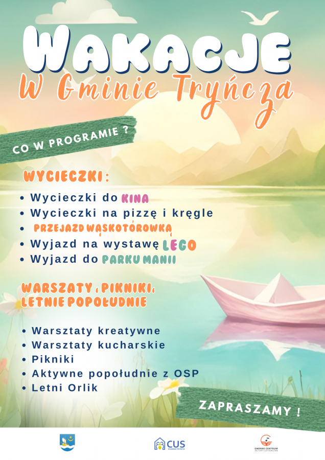 Obrazek Zachęcamy do śledzenia fanpage gminy Tryńcza oraz strony internetowej gdzie będą publikowane harmonogramy kolejnych tygodni wakacji ! więcej