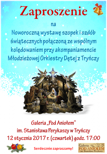 Serdecznie zapraszamy na Noworoczną wystawę szopek i ozdób świątecznych połączoną z koncertem kolęd przy akompaniamencie Młodzieżowej Orkiestry Dętej z Tryńczy.