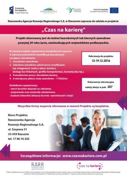 Rzeszowska Agencja Rozwoju Regionalnego S.A. ogłosiła termin rekrutacji do projektu „Czas na Karierę” realizowanego w ramach działania 7.1 RPO WP.