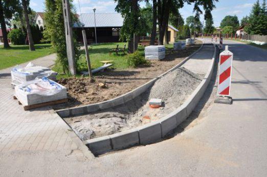 Trwa realizacja prac w ramach środków z funduszu sołeckiego na 2016 r. w poszczególnych sołectwach. W bieżącym tygodniu wykonawca pracuje przy budowie chodnika i ogrodzenia przy grzybku rekreacyjnym w Ubieszynie