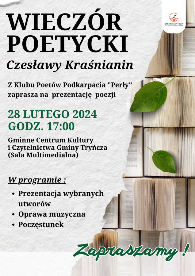 Obrazek 𝒁𝒂𝒑𝒓𝒂𝒔𝒛𝒂𝒎𝒚 𝒏𝒂 𝑾𝒊𝒆𝒄𝒛𝒐́𝒓 𝑷𝒐𝒆𝒕𝒚𝒄𝒌𝒊 𝑪𝒛𝒆𝒔ł𝒂𝒘𝒚 𝑲𝒓𝒂𝒔́𝒏𝒊𝒂𝒏𝒊𝒏... więcej