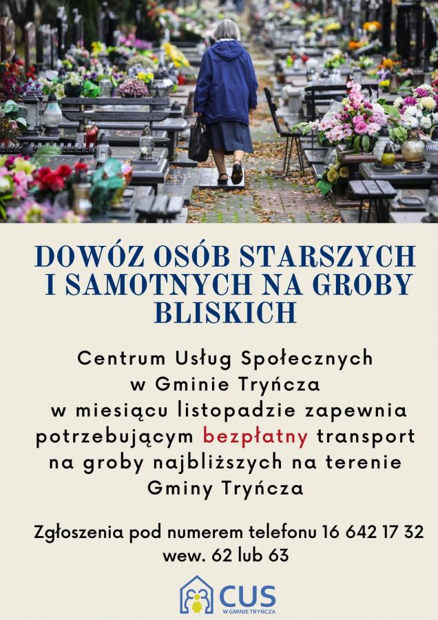 Obrazek Centrum Usług Społecznych w Gminie Tryńcza w miesiącu listopadzie zapewnia osobom starszym i samotnym bezpłatny transport na groby najbliższych na terenie Gminy Tryńcza więcej
