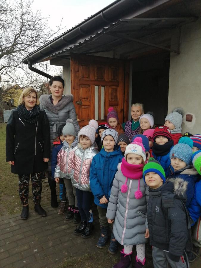 Obrazek Zabiegani, zatroskani o swoje potrzeby, tłumaczący się brakiem czasu –zapominamy o drugim człowieku, który jest obok nas. Często są to ludzie starsi, samotni, nieposiadający rodziny lub żyjący z dala od niej. Właśnie do takich osób udały się p.o. kierownika GOPS –Bernadeta Jakubiec wraz z pracownikiem socjalnym –panią Justyną Wikierą  w towarzystwie dzieci z oddziału przedszkolnego wraz z wychowawcą Joanną Buszta.