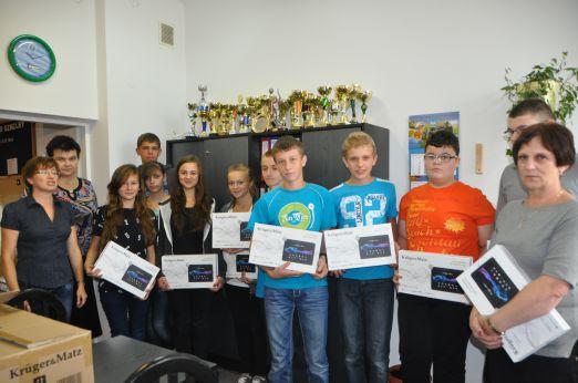 W dniu dzisiejszym odbyło się przekazanie 30 tabletów szkole w Gniewczynie Łańcuckiej. Tablety zostały zakupione w ramach realizowanego przez Gminę Tryńcza projektu pod nazwą Podniesienie jakości kształcenia w Zespołach Szkół na terenie Gminy Tryńcza poprzez doposażenie w środki dydaktyczne i rozbudowę Zespołu Szkół w Tryńczy o obiekt wielofunkcyjny.