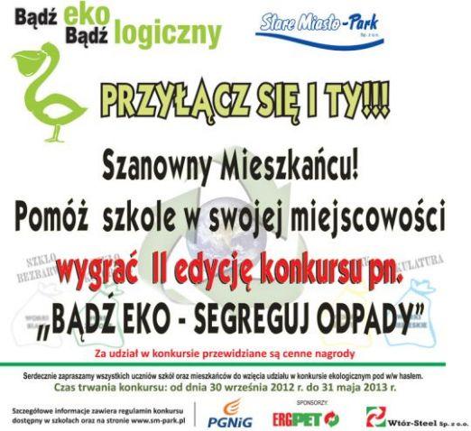 Organizatorem Konkursu Ekologicznego pn.„BĄDŹ EKO - SEGREGUJ ODPADY”, jest Spółka „Stare Miasto-Park”.