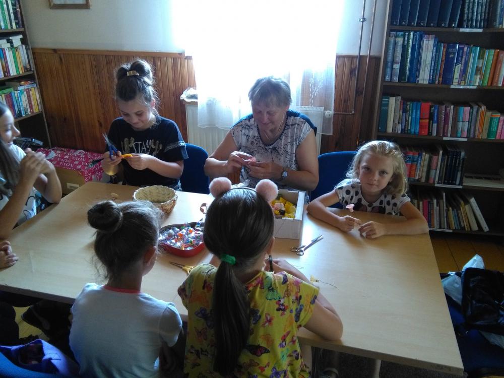 Obrazek W ramach wakacyjnych zajęć Gminna Biblioteka Publiczna Filia w Ubieszynie zorganizowała dla dzieci i młodzieży wakacyjne zajęcia rękodzielnicze - nauka robienia kwiatów z krepiny pod okiem Pani Marii Usowskiej.