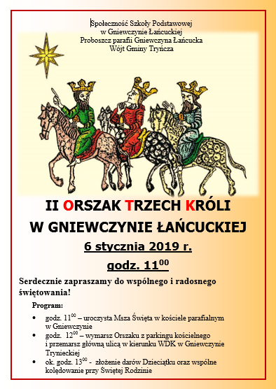 Obrazek Zapraszamy na II Orszak Trzech Króli w Gniewczynie Łańcuckiej, który odbędzie się 6 stycznia 2019 r. o godz. 11:00 więcej