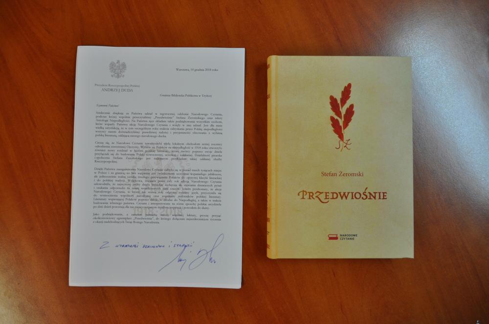 Obrazek Gminna Biblioteka Publiczna w Tryńczy otrzymała podziękowanie od Prezydenta RP Andrzeja Dudy za udział w ogólnopolskiej akcji "Narodowe Czytanie 2018" więcej