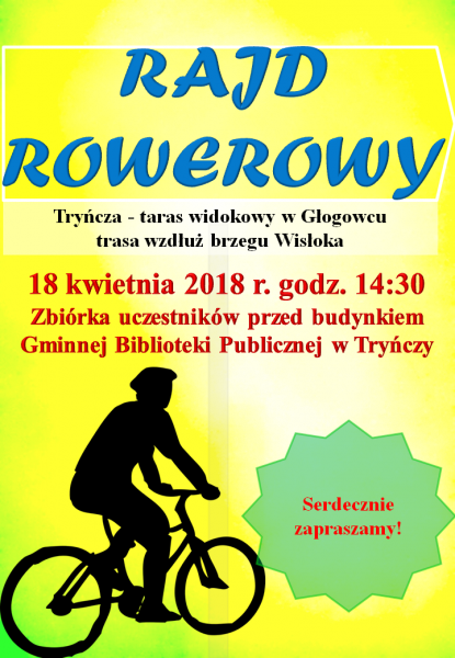 Serdecznie zapraszamy na rajd rowerowy, który odbędzie się w dniu 18 kwietnia br. o godz. 14:30.