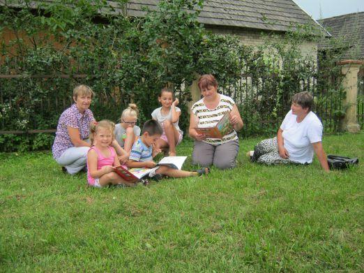 Dnia 6 sierpnia 2015 r. Gminna Biblioteka Publiczna w Tryńczy przy współpracy z Panią Sołtys wsi Wólka Ogryzkowa Heleną Mazur zorganizowała czytanie dzieciom w plenerze.