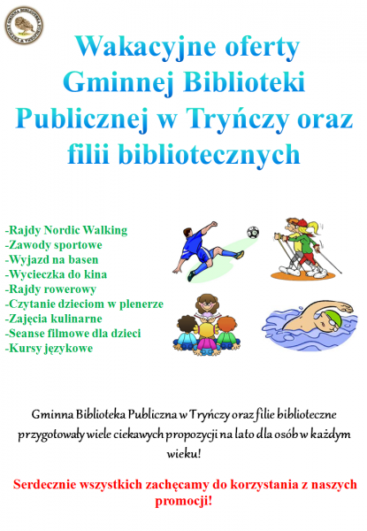 więcejDnia 24.07.2015 r. miał miejsce rajd Nordic Walking organizowany przez Gminną Bibliotekę Publiczną w Tryńczy w ramach programu „Wakacje z Biblioteką 2015”.