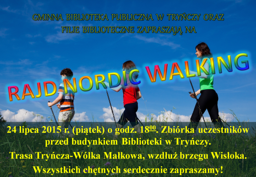 Gminna Biblioteka Publiczna w Tryńczy oraz filie biblioteczne serdecznie zapraszają na rajd Nordic Walking!