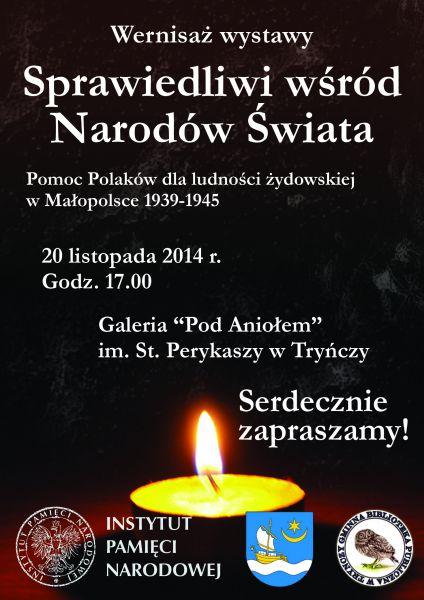 W dniu 20 listopada 2014 r. (tj. czwartek) o godz. 17.00 w Galerii "Pod Aniołem" im. St. Perykaszy w Tryńczy nastąpi otwarcie wystawy Instytutu Pamięci Narodowej "Sprawiedliwi wśród Narodów Świata ..."