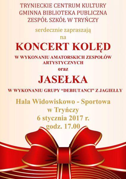 Serdecznie zapraszamy na koncert kolęd oraz jasełka, dnia 6 stycznia 2017 r. o godz. 17:00 w Hali Widowiskowo - Sportowej w Tryńczy!