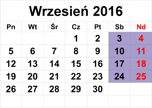 PN WT ŚR CZ PT SB ND