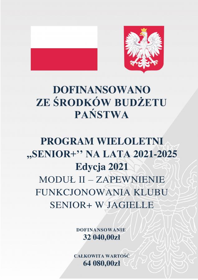 w ramach Programu Wieloletniego Senior+ - Edycja 2021. Działający w strukturze organizacyjnej Centrum Usług Społecznych w Gminie Tryńcza - Klub Senior+ w Jagielle otrzymał dofinansowanie na zapewnienie funkcjonowania w wysokości 32 040,00 zł. Uczestnicy klubu aktywnie uczestniczą w różnego rodzaju zajęciach: m.in. warsztatach pracy twórczej, gdzie zapoznają się ze sztuką zdobienia i rozwijają umiejętności artystyczne, warsztatach kulinarnych, zajęciach ruchowych, muzycznych, spotkaniach integracyjnych z dziećmi, młodzieżą oraz seniorami