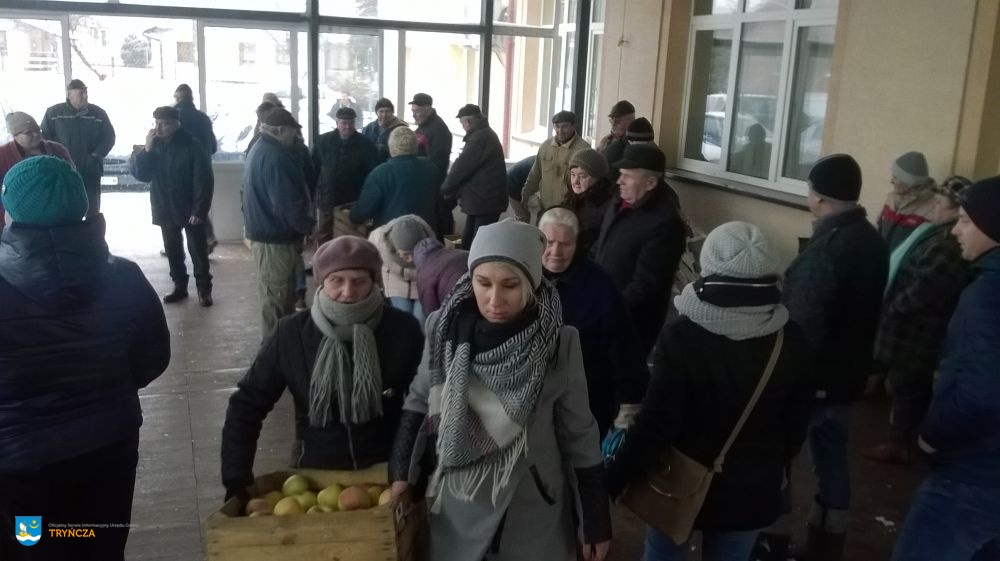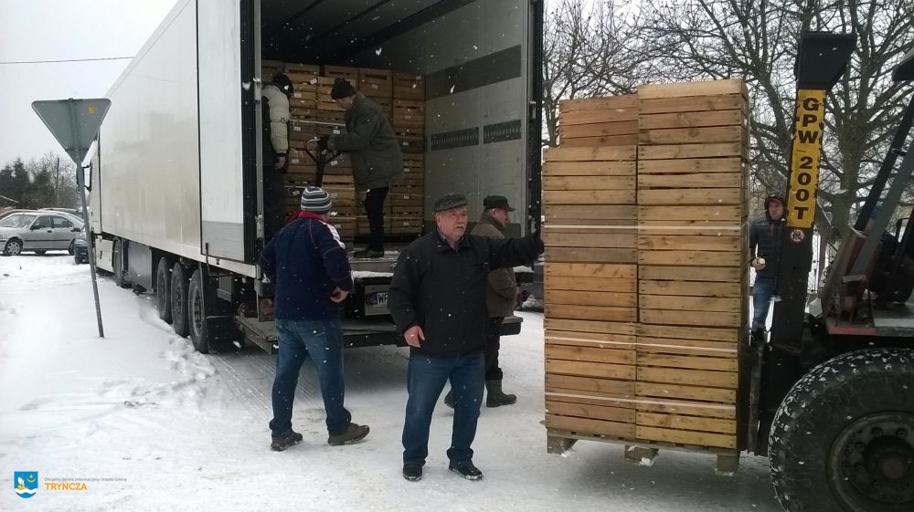 Stowarzyszenie Przyjaciół Korchowa „JEDNOŚĆ WSI” w porozumieniu z Gminnym Ośrodkiem Pomocy Społecznej w Tryńczy w dniu 5 stycznia br. rozdysponowało wśród mieszkańców Gminy Tryńcza 15 ton jabłek. Owoce wydawane były w Gniewczynie Łańcuckiej i w Jagielle obok Wiejskich Domów Kultury.