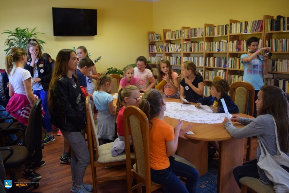 Gminna Biblioteka Publiczna w Tryńczy również w tym roku włączyła się w ogólnopolską akcję „Noc Bibliotek” pod hasłem „Czytanie porusza”. W akcji wzięło udział około 50 osób z terenu naszej gminy. Atrakcje przygotowane przez bibliotekę przyciągnęły zarówno młodzież szkolną jak i dorosłych czytelników. „Noc Bibliotek” rozpoczęła się spotkaniem autorskim z Stanisławem Kornasiewiczem z Leżajska - twórcą bajek, wierszy i satyr. Poeta wciągnął uczestników spotkania w magiczny świat bajek swojego autorstwa. Następnie uczestnicy zgromadzili się w plenerze na terenie zielonym obok mostu nad Wisłokiem. Dzieci oraz młodzież pod okiem opiekunów wzięli udział w grze terenowej pn. „poszukiwanie skarbów”. Uczestnicy zostali podzieleni na dwie grupy, które miały za zadanie co 40 kroków ukryć skarby w pobliżu drogi nad Wisłokiem, a następnie obie drużyny wyruszyli na poszukiwania. Młodzi czytelnicy aktywnie podeszli do zadań i z pełnym zaangażowaniem wykonywali polecenia zawarte w regulaminie gry terenowej. Wygrała drużyna, która pierwsza znalazła wszystkie skarby. W tym samym czasie dorośli mieszkańcy gminy mieli okazję usłyszeć wiersze oraz satyry Stanisława Kornasiewicza. Punktem końcowym spotkania był słodki poczęstunek oraz ognisko, na którym wszyscy mogli posilić się gorącymi kiełbaskami. Każdy z uczestników otrzymał pamiątkowe gadżety związane z akcją „Noc Bibliotek ”.