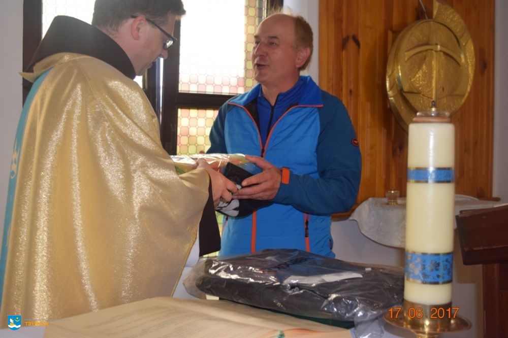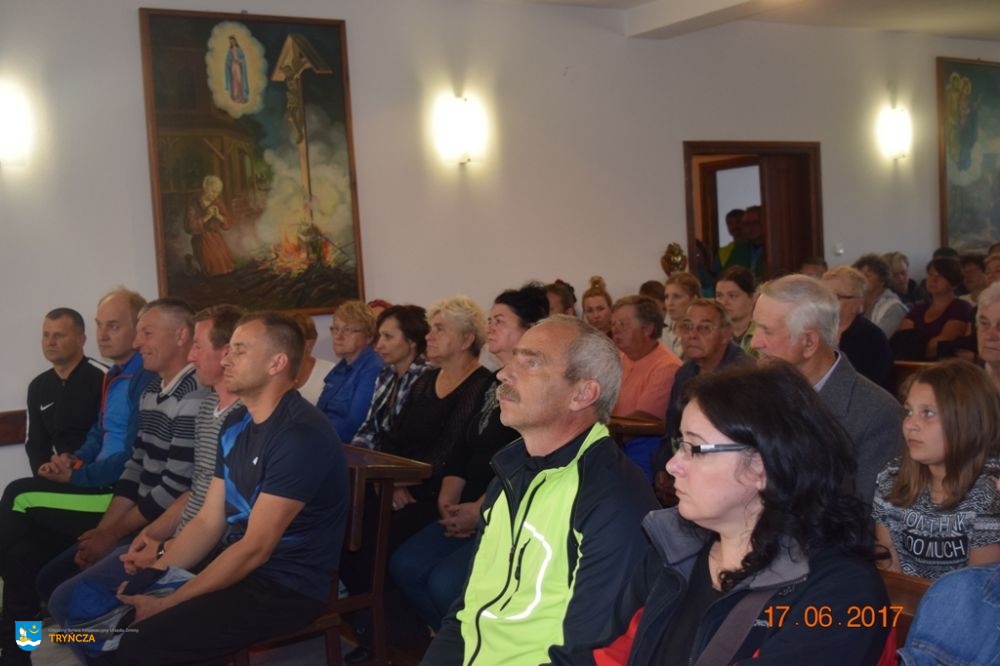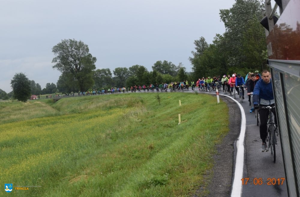 W sobotę 17 czerwca br. sołtys wsi Jagiełła, Grzegorz Drzystek przy współpracy Gminnej Biblioteki Publicznej w Tryńczy zorganizowali pielgrzymkę rowerową do Klasztoru Ojców Bernardynów w Leżajsku. W pielgrzymce wzięła udział około 120 - osobowa grupa mieszkańców z naszej gminy i okolic na czele z Wójtem Gminy Tryńcza Ryszardem Jędruchem oraz Przewodniczącym Rady Gminy Stanisławem Wielgosem. Tego dnia panowała kapryśna pogoda, lecz nie zniechęciło to pielgrzymów do wspólnego wyjazdu. Trasa przebiegła bardzo szybko, a tempo jazdy dostosowane było do wieku uczestników. W kaplicy Domu Pielgrzyma Ojciec Joachim Ciupa odprawił Mszę Święta w intencji rowerzystów. Na zakończenie pielgrzymki w Remizie OSP w Tryńczy na uczestników czekał gorący poczęstunek, tam też wszyscy mogli odpocząć po wyczerpującej wyprawie. Organizatorzy składają serdeczne podziękowania policji oraz jednostkom OSP z Tryńczy i z Jagiełły, którzy czuwali nad bezpieczeństwem pielgrzymów - rowerzystów.