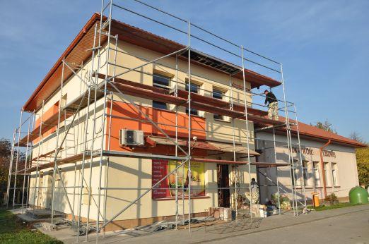 Wykonane zostało pokrycie dachowe. Aktualnie trwają prace dotyczące malowania i odnowienia elewacji.