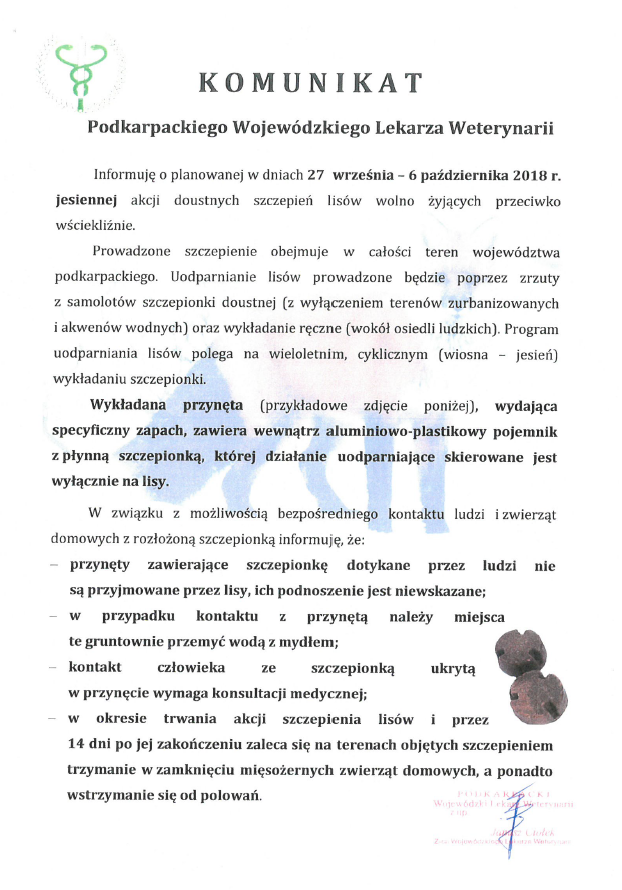 KOMUNIKAT PODKARPACKIEGO WOJEWÓDZKIEGO LEKARZA WETERYNARII