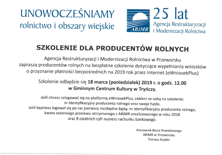 SZKOLENIE DLA PRODUCENTÓW ROLNYCH