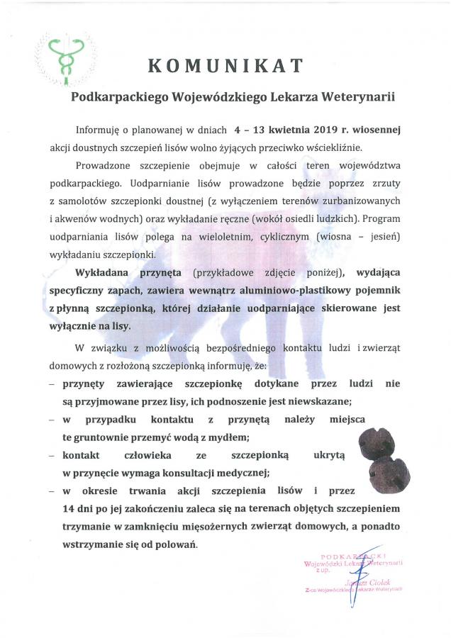 KOMUNIKAT PODKARPACKIEGO WOJEWÓDZKIEGO LEKARZA WETERYNARII