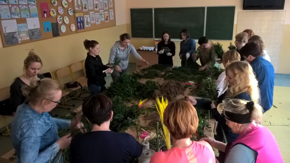 W szkole w Tryńczy zakończyły się przygotowania do Niedzieli Palmowej. Rodzice, uczniowie, nauczyciele oraz wszyscy chętni wspólnie wykonywali piękne ręcznie robione palmy wielkanocne. Każdy mógł odkryć swój talent i miło spędzić czas. Dziękujemy wszystkim, za wspólną pracę.