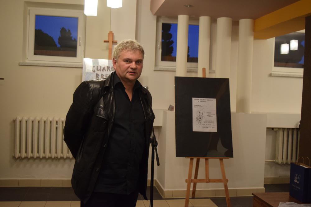 Wernisaż wystawy rysunku satyrycznego, mieszkańca naszej gminy - Dariusza Dałomisa odbył się w czwartek 17 października o godz. 18.00 w Galerii „Pod Aniołem"im. Stanisława Perykaszy w Tryńczy. Dariusz Dałomis, autor wystawy, mieszka i tworzy w Wólce Małkowej, rzeźbiarz, malarz i konserwator drewna.Swoją drogę artystyczną rozpoczął w Jarosławskim Liceum Sztuk Plastycznych a następnie absolwent PZSP w Tarnowie.Uczestnik wielu wystaw artystycznych m.in. Galeria "Pod Aniołem" w Tryńczy, CK Przemyśl, Muzeum Ziemi Leżajskiej, MOK Leżajsk, Galeria "Magnez w Przeworsku",Laureat Regionalnych Przeglądów Plastyki w Przemyślu.Prace artysty znajdują się m.in. w Kościele w Wólce Małkowej oraz w zbiorach prywatnych.Na wystawę przybyło liczne grono mieszkańców naszej gminy , koledzy artyści w osobach: Henryk Cebula ,Krzysztof Dziamara, Ludwika Koczut,Gabriel Manowiec, sołtys Wólki Ogryzkowej Helena Mazur oraz członkowie Klubu Poetów Podkarpacia "Perły" na czele z Prezesem Jerzym Welcem.W artystyczny klimat uczestników wernisażu wprowadziła młoda i utalentowana mieszkanka naszej gminy Martyna Niemirowska.Podczas wernisażu Marzena Rydzik-dyr. GBP wręczyła w imieniu Wójta Gminy Tryńcza Ryszarda Jędrucha podziękowanie i list gratulacyjny na ręce artysty za dotychczasową współpracę włożoną w działalność Galerii "Pod Aniołem"i rozwój dorobku kulturalnego na terenie naszej gminy.