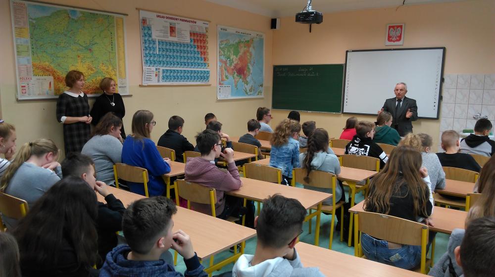 25 listopada uczniowie klasy VII i VIII mieli okazję porozmawiać z profesorem Instytutu Inżynierii Rolniczej na Uniwersytecie Przyrodniczym we Wrocławiu – dr. hab. inż. Antonim Szewczykiem. Pan Profesor odwiedził Tryńczę – rodzinną miejscowość swojej żony ŚP dr hab. inż. Deta Agaty Łuczyckiej, prof. UPWr. Pan Profesor zachęcał młodzież, aby rozwijali swoje zainteresowania, przypomniał ścieżki kształcenia w Polsce. Opowiedział o swoich latach szkolnych, wspominał lata studenckie, pracę zawodową na Uniwersytecie w Algierii, pracę naukową w Instytucie Inżynierii Rolniczej. Pan Profesor opracował m.in. warunki i parametry pracy opryskiwacza stosowanego do chemicznej ochrony roślin, wraz z żoną opracował elektryczne metody wykrywania zafałszowań miodu.