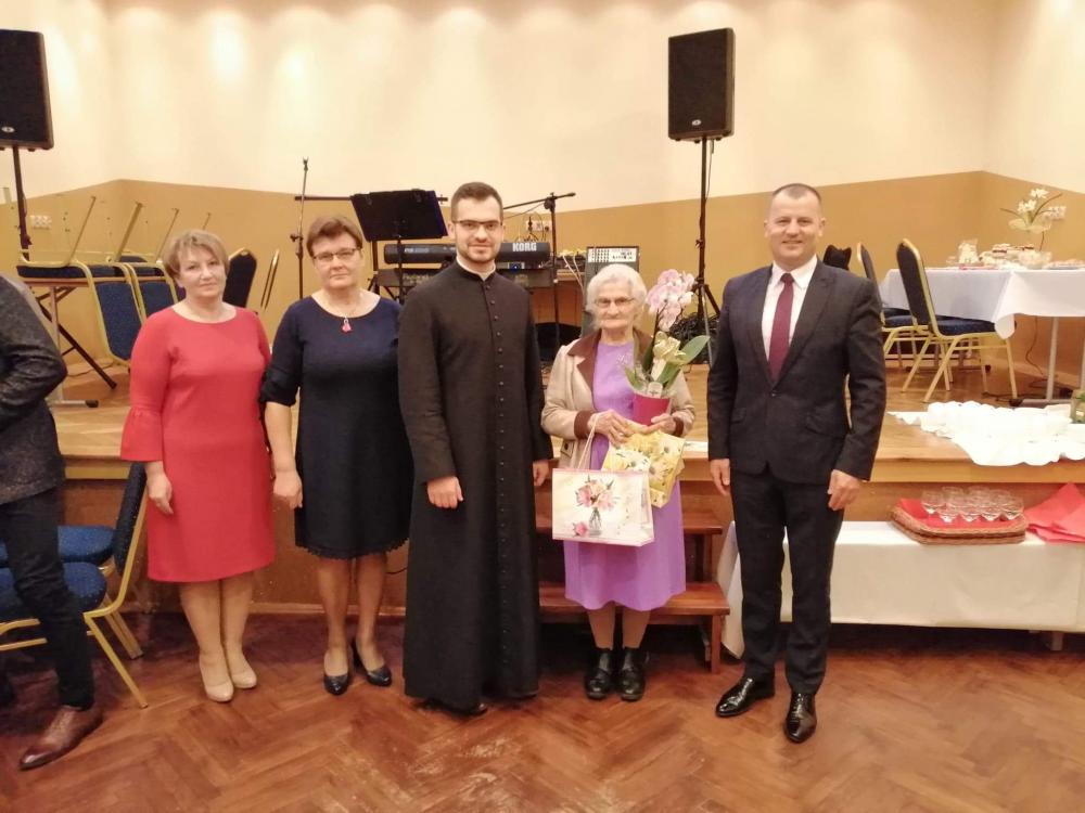 Spotkanie było również okazją do wręczenia kwiatów i złożenia życzeń dla najstarszej uczestniczki Dnia Seniora w dniu urodzin - Pani Adeli Mazur.