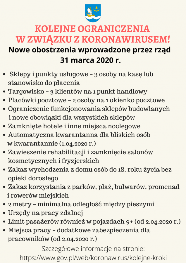Szczegółowe informacje na stronie: https://www.gov.pl/web/koronawirus/kolejne-kroki