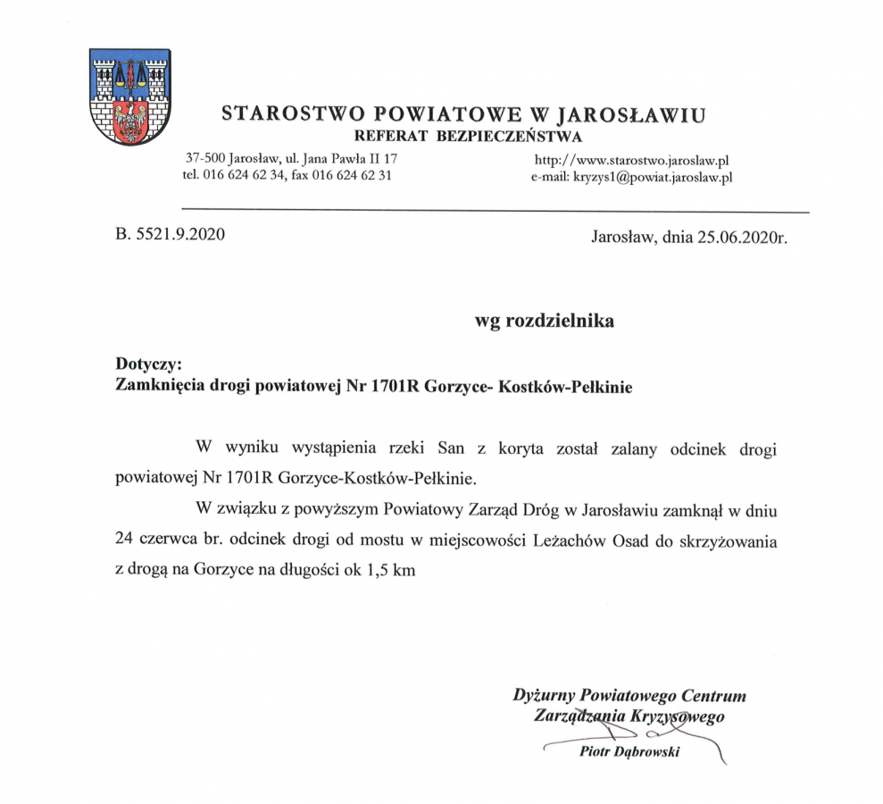 Zamknięcie drogi powiatowej