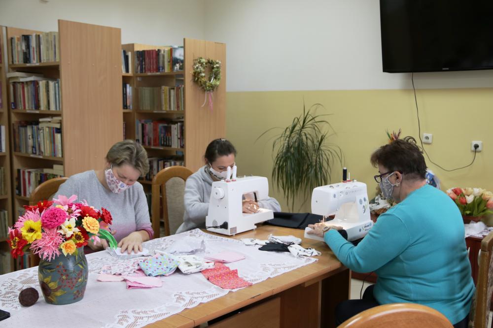 Już od dwóch dni, pracownice Gminnej Biblioteki Publicznej w Tryńczy oraz CIS spontanicznie włączyły się do walki koronawirusem. Oprócz pracy bibliotekarskiej, aktywnie zaangażowały się w szycie maseczek dla mieszkańców naszej gminy .Wcześniej organizowane w bibliotece kursy szycia i zakupione maszyny teraz przydają się jak nigdy.Wystarczą chęci i podstawowe umiejętności a także materiał, który pozyskiwany jest m.in. od sponsorów i osób prywatnych. Panie specjalizują się w szyciu kolorowych i bawełnianych maseczek wielokrotnego użytku, które za ich pośrednictwem trafią do potrzebujących mieszkańców naszej gminy.