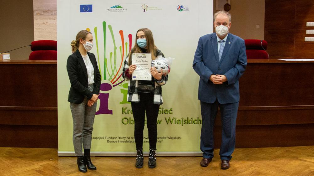 W uroczystości wzięła również udział Sandra Cebulak, uczennica Szkoły Podstawowej im. Ojca Świętego Jana Pawła II w Gorzycach, która zdobyła wyróżnienie w w/w konkursie. Sandra przygotowała film, który był reklamą infrastruktury rowerowej, tras nordic-walking na terenie Gminy Tryńcza oraz związanych z nimi atrakcjami turystycznymi i formami aktywnego wypoczynku dla turystów i mieszkańców.
