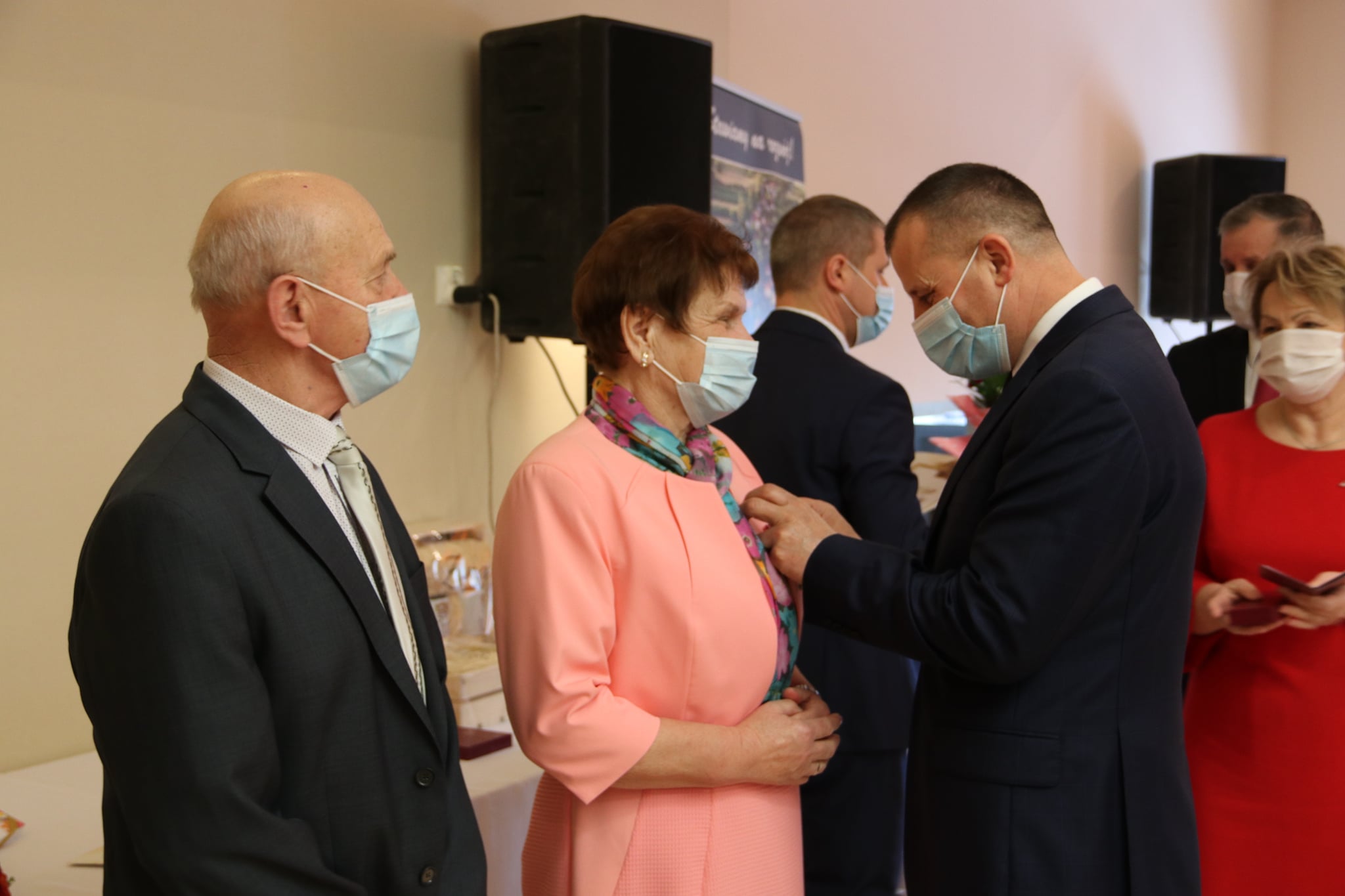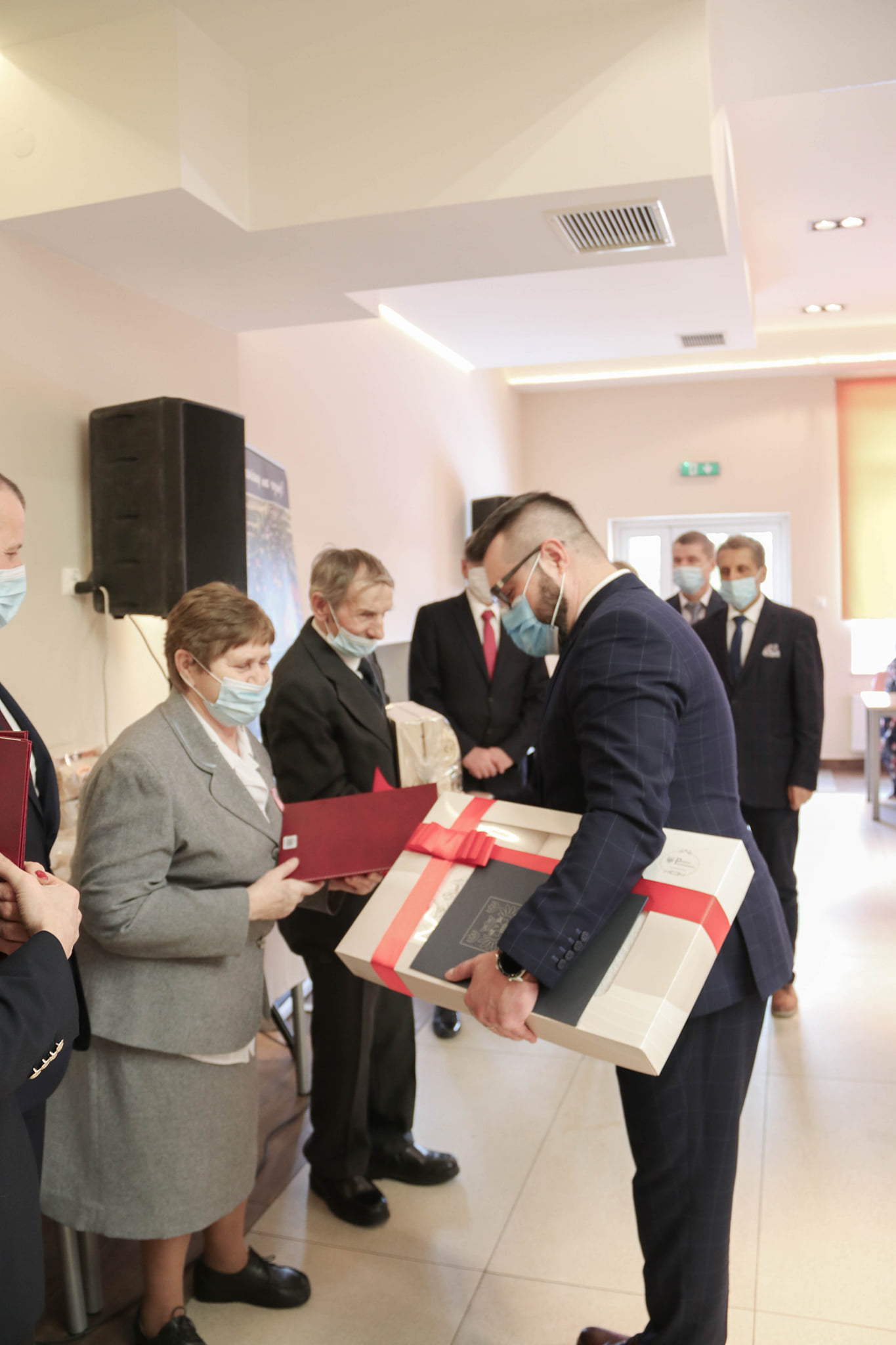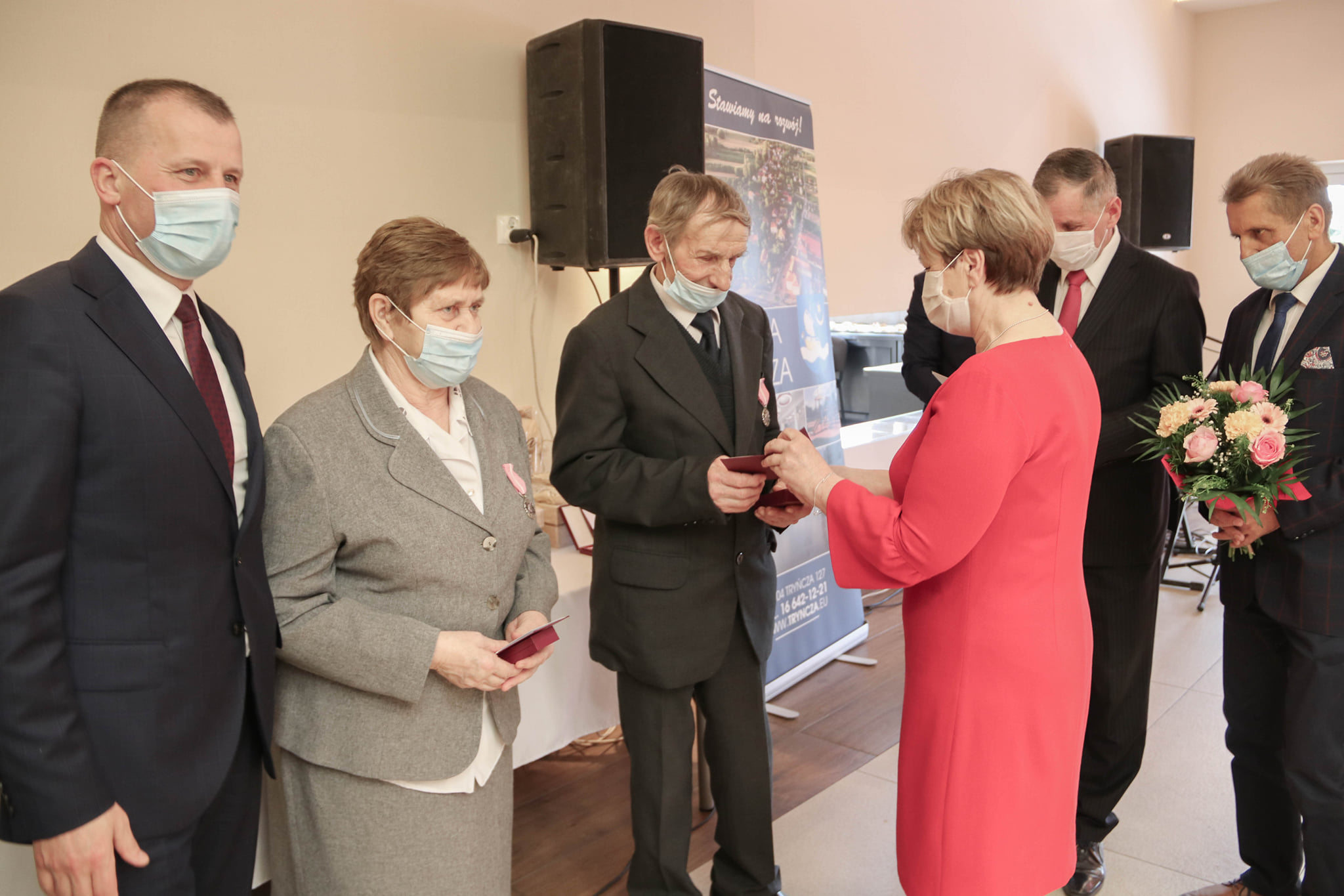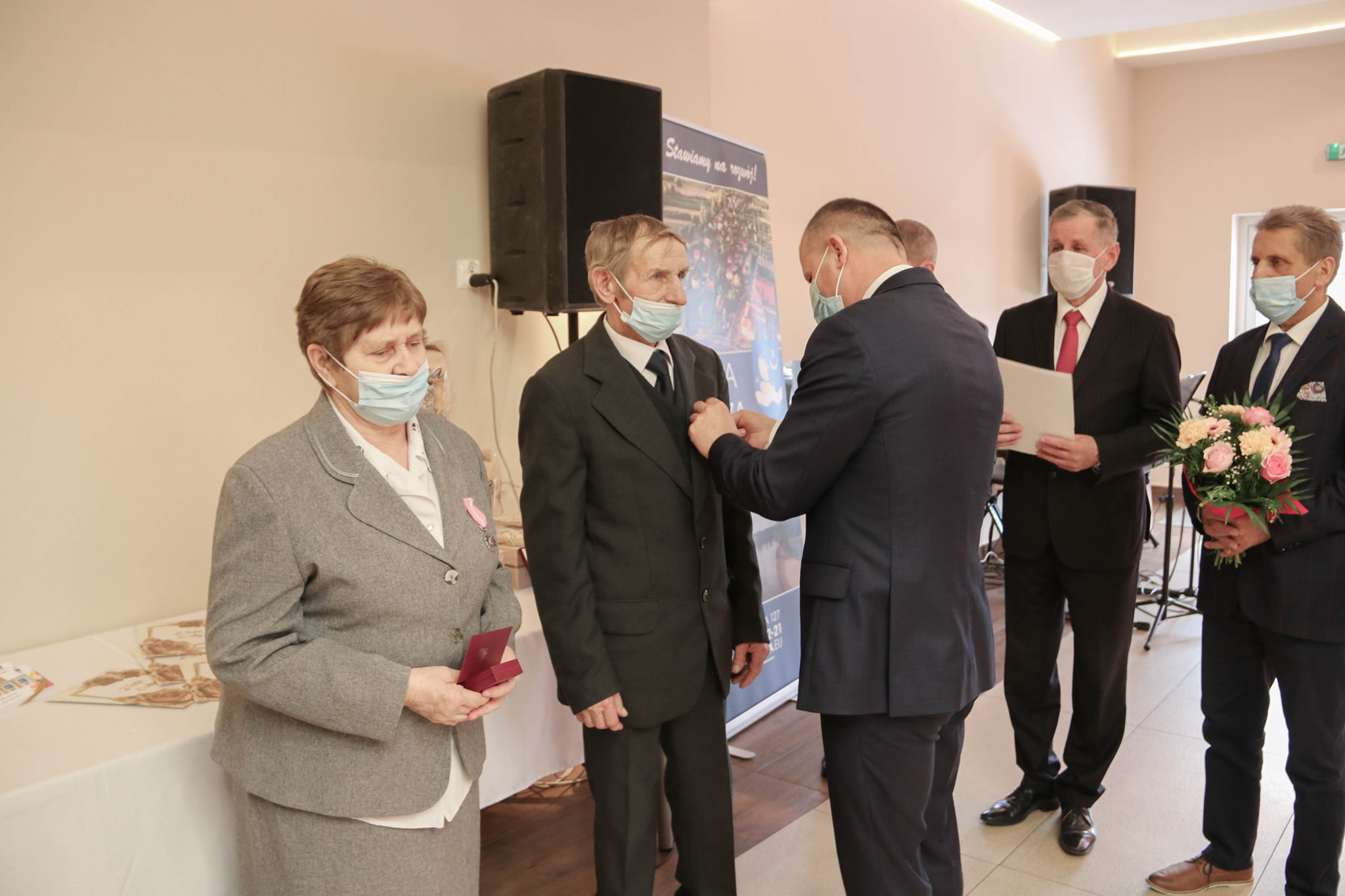 Następnie Jubilaci zostali odznaczeni medalami „Za długoletnie pożycie małżeńskie”, nadane przez Prezydenta Rzeczypospolitej Polskiej oraz zostały wręczone listy gratulacyjne oraz upominki.