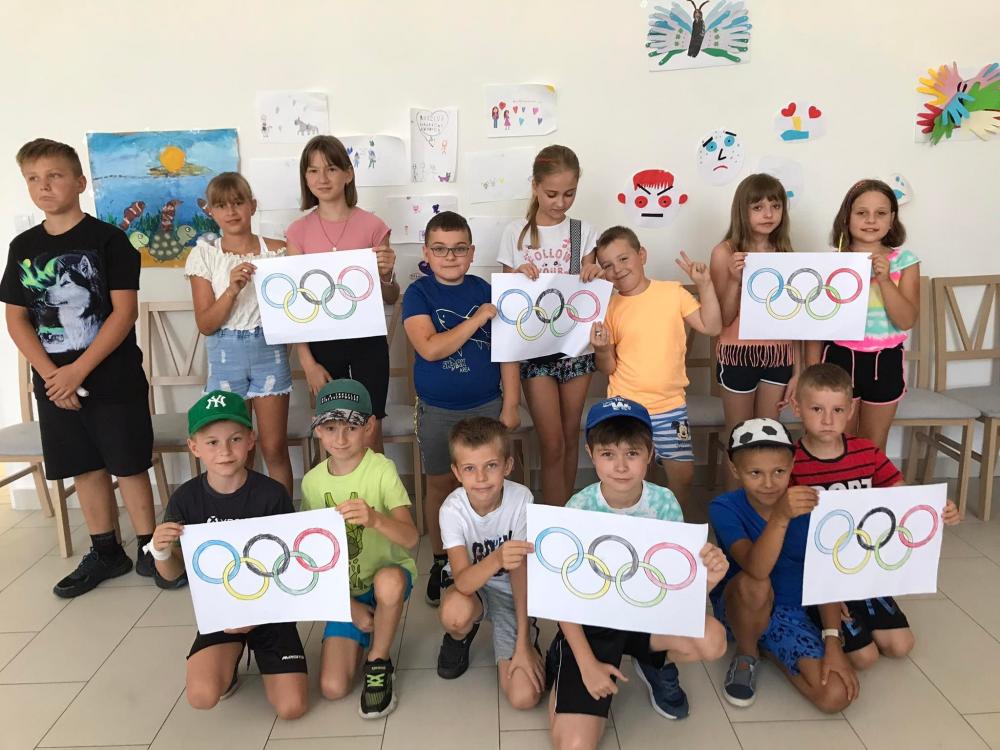 Na początku spotkania dzieci zapoznały się z krótką historią igrzysk olimpijskich, następnie pokolorowały flagę olimpijską.