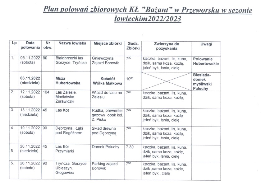 Plan polowań zbiorowych koła łowieckiego "Bażant"