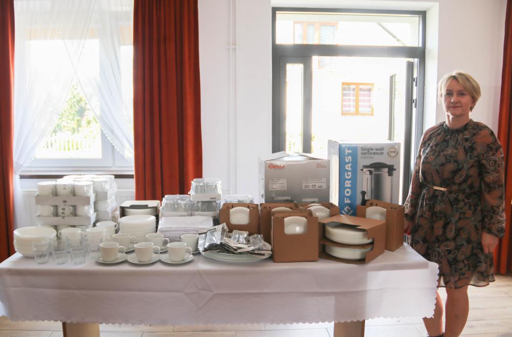 W ramach realizacji zadania do WDK trafiły m. in.: naczynia (talerze płytkie, talerze głębokie, talerze deserowe, bulionówki, szklanki zestawy sztućców), wyposażenie do kuchni, regały, ramy na zdjęcia, telewizor, które posłużą do realizacji nowych lokalnych inicjatyw.