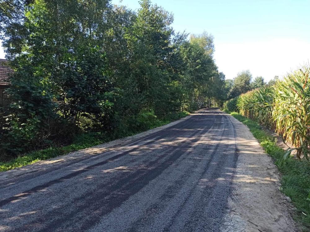 Zakres robót obejmował przebudowę drogi na długości 690 mb. poprzez utwardzenie nawierzchni przy pomocy emulsji i grysów oraz wykonanie poboczy.