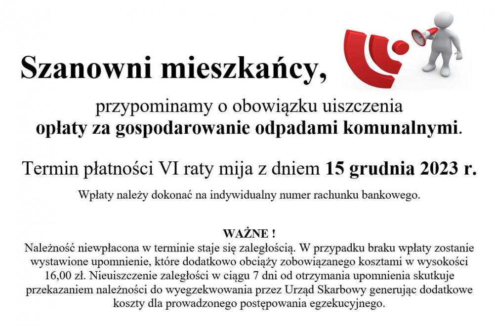 Przypominamy o obowiązku uiszczenia opłaty za gospodarowanie odpadami komunalnymi